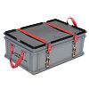 Behälter für Gefahrgut RAKO GGVSEB, PP, Behälter silbergrau, Deckel dunkelgrau, aussen 600x400x235 mm, innen 558x358x205 mm, 43.0l, Verpackungsgruppe I-III, Bruttohöchstmasse 30.0 kg, Schaumstoffeinlage, in Deckel, eingeklebt, Prägung ab Cliché, auf einer Kurzseite, eingemittet, schwarz, Traggurt, auf beiden Kurzseiten, angenietet, Spanngurte mit Klemmschloss, an Behälter aussen, angenietet