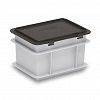 Scharnierdeckel, PP, dunkelgrau, aussen 200x150x16 mm, mit Schnappverschlüssen, zu RAKO