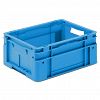 Systembehälter EUROTEC, PP, lichtblau RAL 5012, aussen 400x300x220 mm, innen 365x265x205 mm, 20.0 l, Seitenwände geschlossen, Boden verrippt, 2 Grifflöcher und 2 Muschelgriffe, Gabelnuten geschlossen, horizontale Aufnahmen offen, integrierte Etikettenhalter auf allen Seiten, Greiferecken 60 mm